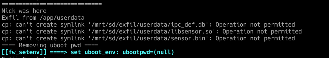 This then opened up further attacks such as removing the U-Boot password. The script app_check_settings.sh provides us the info.